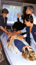 Uma menina de 16 anos com o seu lado esquerdo paralisado e o braço esquerdo convulsivo desde o segundo dia de vida devido a um colapso do pulmão e perda de oxigênio no hemisfério cerebral direito. Estava numa cadeira de rodas por 16 anos.