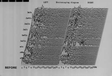 Os EEGs abaixo ilustram a diferença no cérebro de Harry antes e depois da primeira sessão com o Brainwave I.